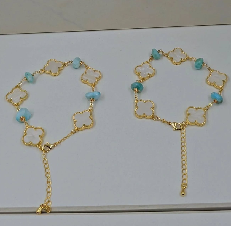 Diseño exclusivo: Una delicada flor tallada en nácar, realzada con un toque sutil de larimar, piedra semipreciosa símbolo del Caribe. Esta joya combina elegancia natural con un diseño atemporal que resalta la belleza de cada detalle.