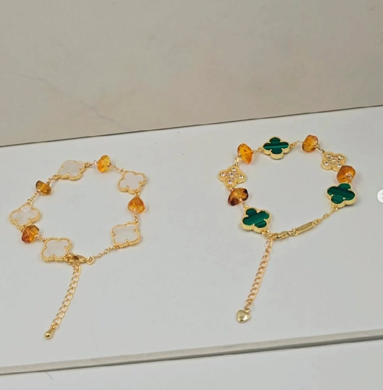 Materiales: Ámbar auténtico, malaquita natural y nácar genuino